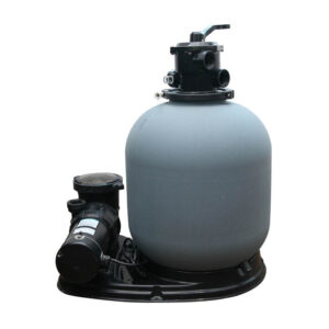 Pool water is pushed by the pump into the top of the sand filter, where it slowly flows downward through the sand bed. Dirt, oils, and debris get trapped between the sand particles. The filtered water then exits from the bottom of the tank and returns to the pool.