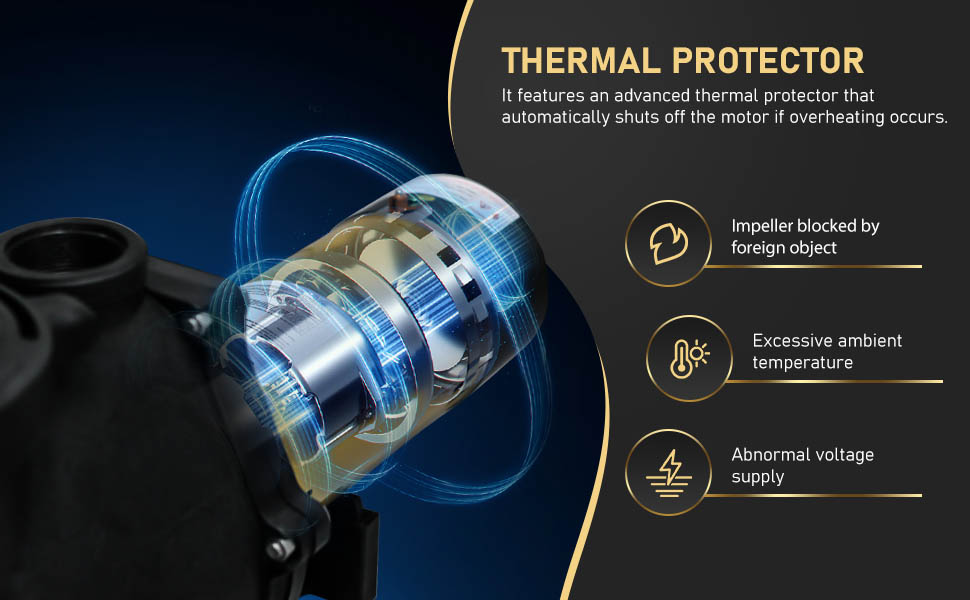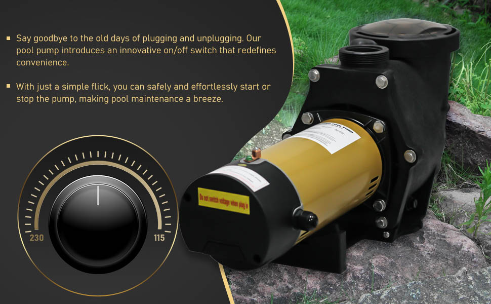 • DUAL VOLTAGE: This pump is compatible with both 115Vac and 230Vac power supplies. It comes pre-wired for 115V with a power cord, but can easily be rewired to 230V in just seconds for convenient installation. If you don’t know the power supply of your pool, we are glad to help at any time.